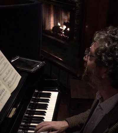 For the Silent Reading Party, the Fireside Room at the Sorrento goes quiet and fills with people. You bring whatever you feel like reading and read it silently, to yourself, while Paul Matthew Moore plays exquisitely relaxing piano music, and servers bring you food and drinks.
