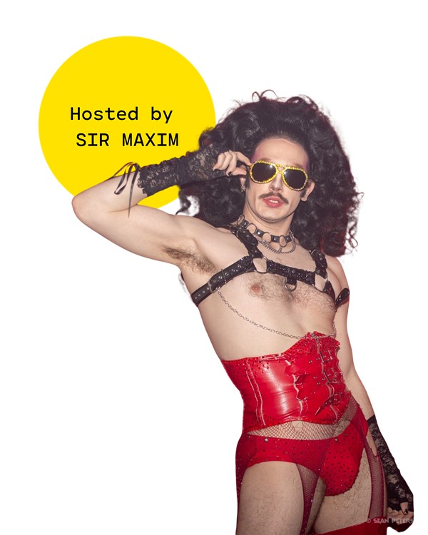 Sir Maxim is a glam-rock drag king from Austin, TX, igniting stages with 70s flair, sharp comedy, and back-to-back jump splits. He's performed everywhere, from street corners to Austin City Limits, sharing the spotlight with Drag Race stars and local legends. Sexy, dazzling, and stupid, he leaves everything he touches crackling with lightning and rhinestones.