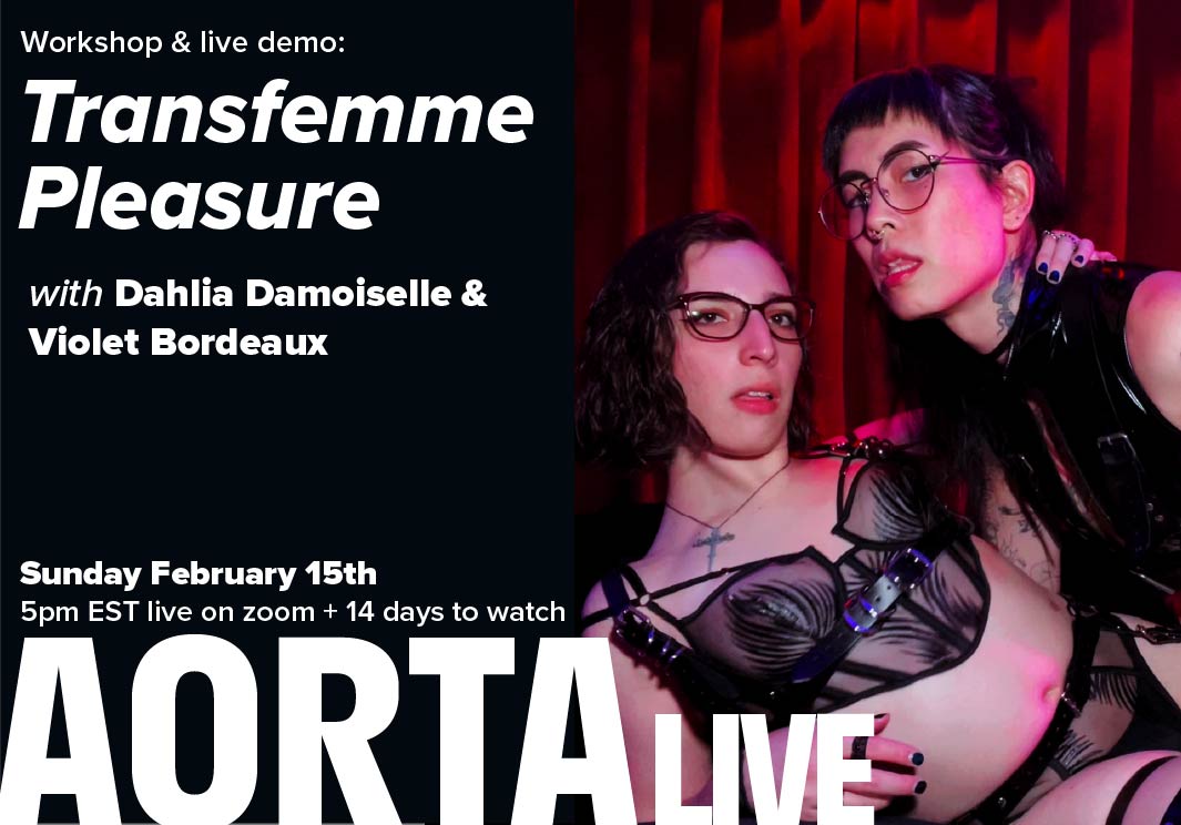 AORTA films champions queer and trans indie p()rn to create a future of ethical fuckery. An internationally award-winning studio currently celebrating their tenth year, AORTA films has been making “lusty, opulent, ethical fuckery” since 2015. Centering queer performers across a wide range of bodies and identities, AORTA films offers inventive explicit programming including 90+ short & feature films, a queer clip library, a semi-annual film festival, a guest artist series, commercial work, workshops, and more. This year, to celebrate their 10th year AORTA films launched AORTAlive, a home for live digital adult programing featuring online events including workshops, artist talks, performances, panels, and more. In addition to their site membership, all members of AORTA films get $10 tickets to all AORTAlive events. Not a member yet? See for yourself at www.AORTAfilms.com.