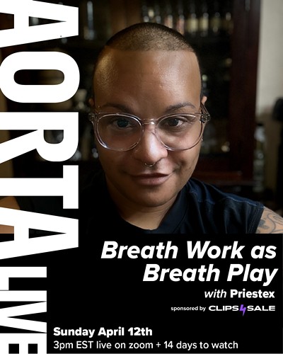 AORTA films champions queer and trans indie p()rn to create a future of ethical fuckery. An internationally award-winning studio currently celebrating their tenth year, AORTA films has been making “lusty, opulent, ethical fuckery” since 2015. Centering queer performers across a wide range of bodies and identities, AORTA films offers inventive explicit programming including 90+ short & feature films, a queer clip library, a semi-annual film festival, a guest artist series, commercial work, workshops, and more. This year, to celebrate their 10th year AORTA films launched AORTAlive, a home for live digital adult programing featuring online events including workshops, artist talks, performances, panels, and more. In addition to their site membership, all members of AORTA films get $10 tickets to all AORTAlive events. Not a member yet? See for yourself at www.AORTAfilms.com.